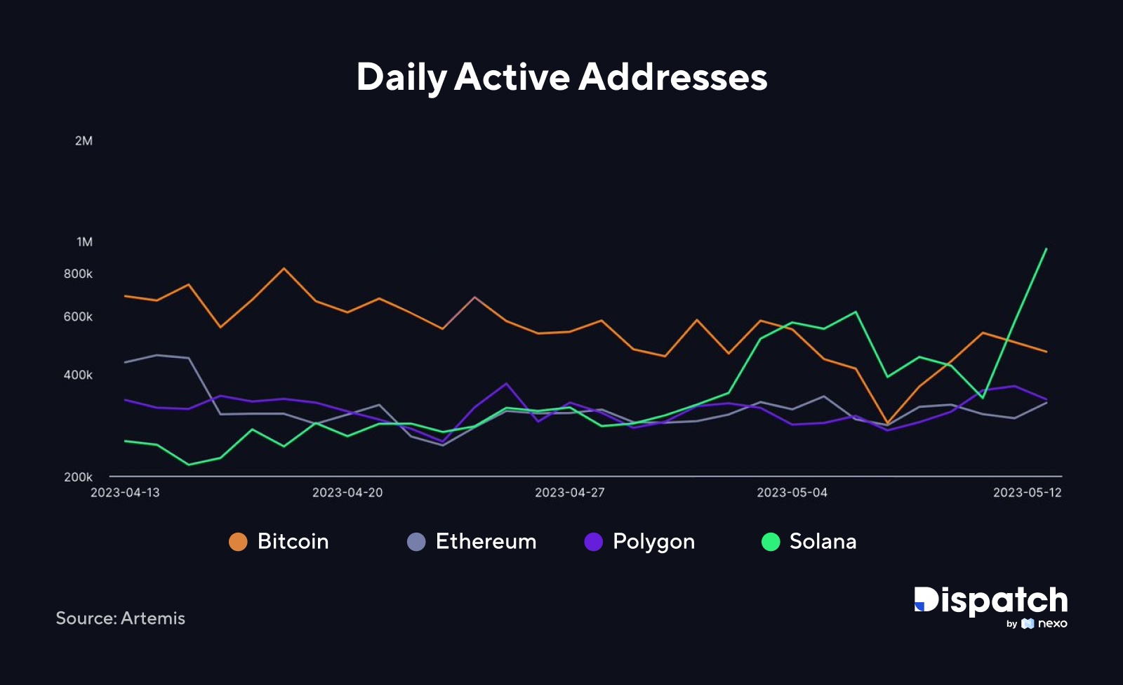 O rany, Solana. W ciągu ostatnich kilku dni Solana dodała ponad 600 000 aktywnych adresów, aby osiągnąć łącznie ponad 1 000 000. Co wyjaśnia skok? Po pierwsze, przeprowadzono szereg eksperymentów z tokenami, które obejmowały znaczną liczbę transakcji. Ale gwałtowny wzrost zaczął się wcześniej i wydaje się być zgodny ze szczytowym przeciążeniem i wysokimi opłatami, które ostatnio charakteryzowały zarówno Ethereum, jak i Bitcoin. Problemy z ostatecznością Ethereum również mogły pomóc skierować użytkowników do Solany. Tani, szybki łańcuch bloków, aby wygrać?