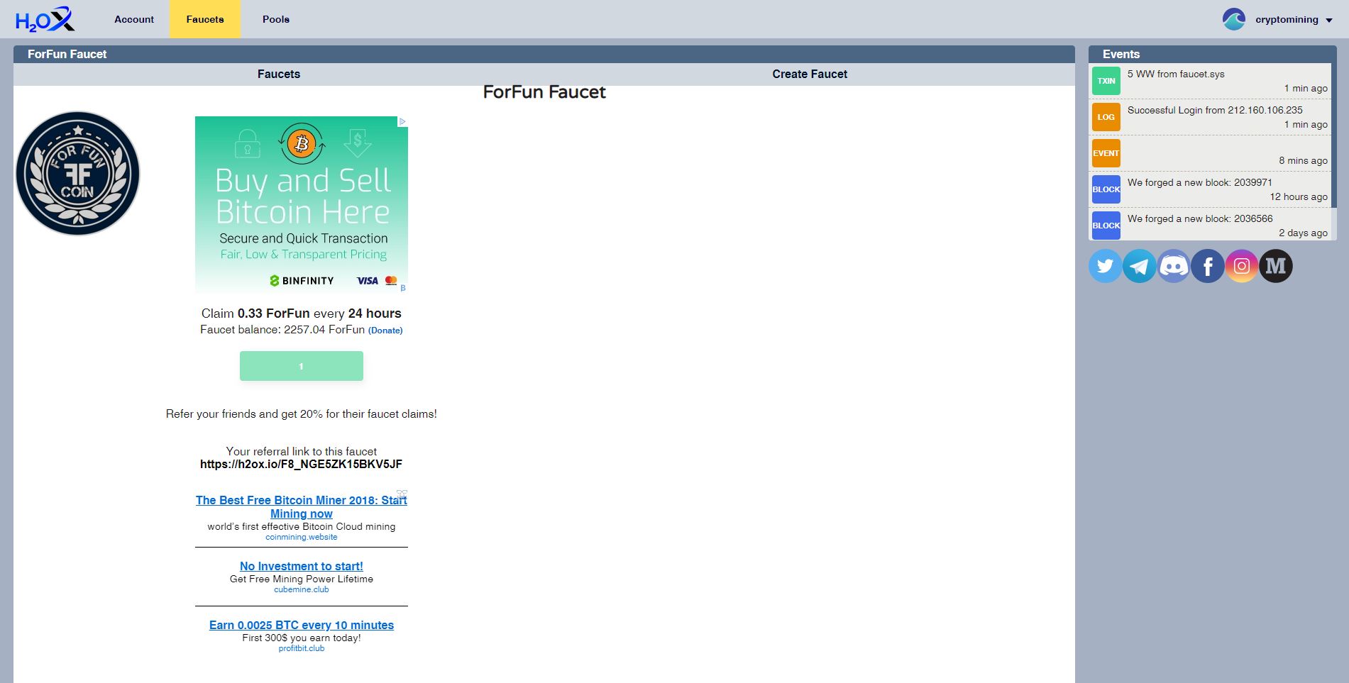 W kraniku znajdziecie nie tylko ForFun Coin, ale również inne monety (czas oczekiwania na claim 12-78 godzin, co Was nie zmusza do ciągłego klikania;)