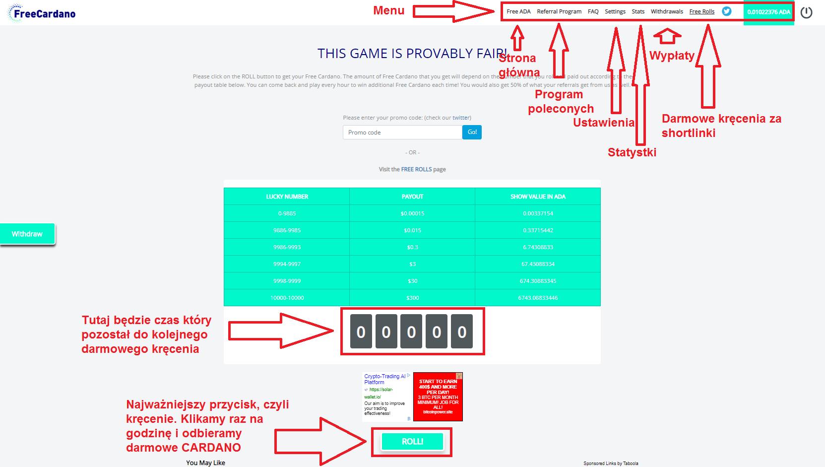 Bardzo ciekawy darmowy kranik kryptowalut. Bardzo przejrzysty i prosty w obsłudze. Mamy możliwość zbierania jednej kryptowaluty. Żeby zebrać wystarczy założyć konto i raz na godzinę kliknąć “Roll”.