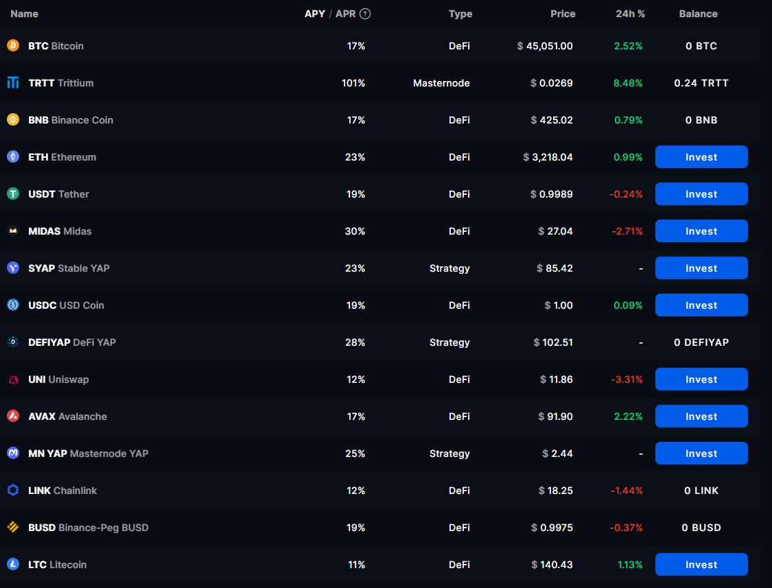 Midas Investments to założona w 2018 roku platforma oszczędnościowo-pożyczkowa, która wypłaca wysokie zyski z wielu aktywów. Mają różnorodne zasoby dostępne do obstawiania pojedynczych aktywów lub uprawy plonów za pośrednictwem DeFi. Midas oferuje również portfele automatyczne, które wypłacają ponad 20% RRSO. Jeśli szukasz platformy do zarabiania pasywnego dochodu, Midas może być dla Ciebie.