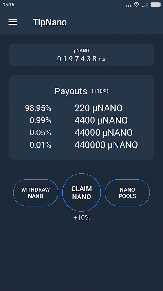 Możesz pobierać dowolną ilość NANO zebraną z salda w aplikacji do portfela NANO bez żadnych opłat! Każde żądanie wypłaty automatycznie wysyła NANO do twojego portfela prawie natychmiast.