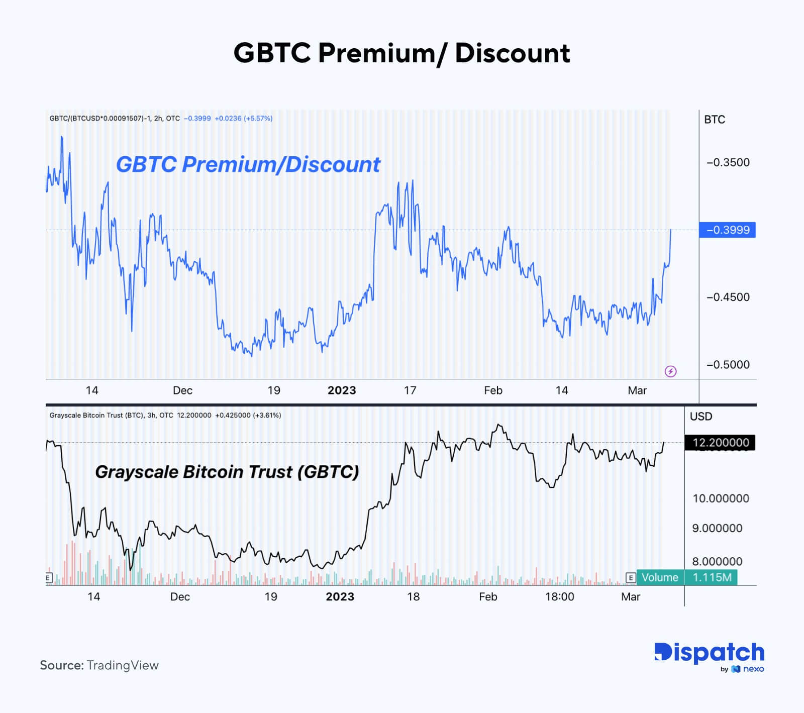 Od połowy lutego GBTC handlowano z 45-50% rabatem w stosunku do ceny BTC, ale rabat ten zamknął się o około 10% w dniach następujących po przesłuchaniu. Biorąc pod uwagę, że Grayscale Bitcoin Trust ma zablokowane około 3% krążącej podaży BTC, ten konkretny scenariusz ma znaczenie nie tylko dla Grayscale i ich spółki macierzystej DCG.