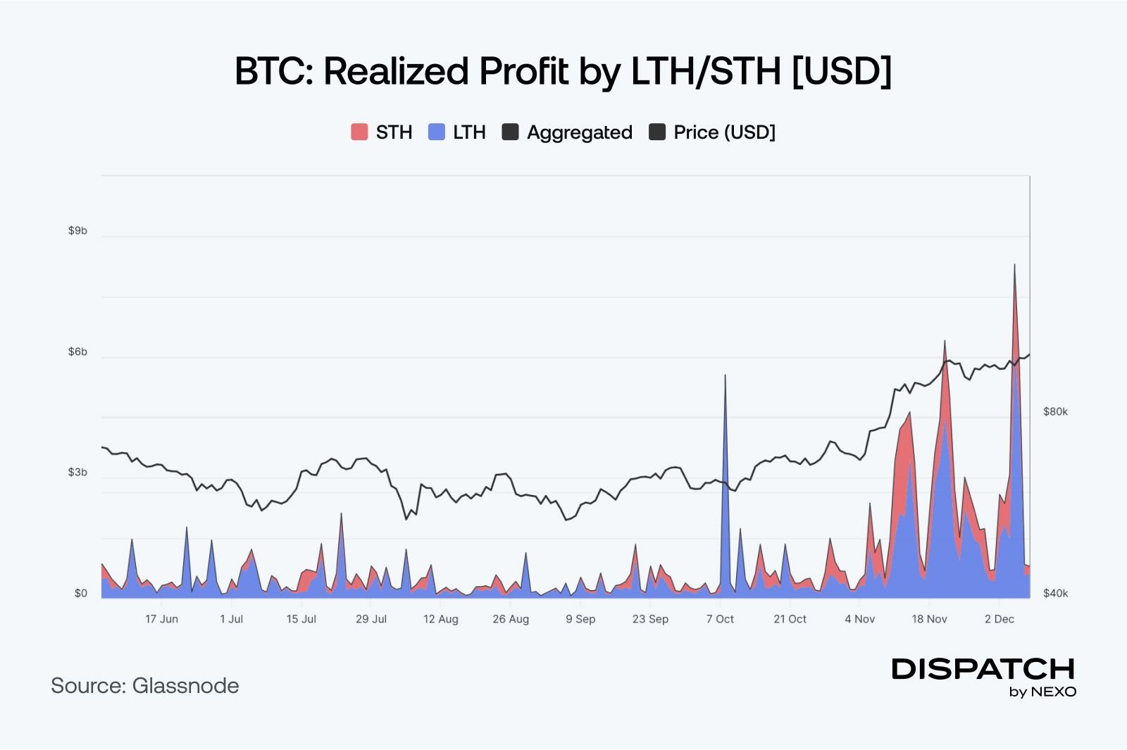 Dynamika bitcoina pozostaje solidna, napędzana szaleństwem zakupów o wartości 5,4 miliarda dolarów, gdy MicroStrategy dodało 55 000 BTC do swoich zasobów. Oscylatory pozostają mocno w strefie wykupienia pomimo ostatnich zmian płynności w kierunku altcoinów. W listopadzie bitcoin zapisał się w historii dzięki swojej największej w historii miesięcznej świecy, wzrostowi cen o 40,8%, podczas gdy 24-godzinne wolumeny obrotu osiągnęły maksima na poziomie 70–80 miliardów dolarów, co zbliżyło go do długo oczekiwanego kamienia milowego 100 000 dolarów. Wszystko to przewidział współzałożyciel Nexo Antoni Trenchev . Oczekuje się, że poziom 100 000 dolarów będzie stanowić znaczący opór, ale trendy historyczne sugerują, że rajd może się na tym nie zakończyć. Od ostatniego dna BTC zyskał już 6x, a jeśli poprzednie cykle wzrostowe się powtórzą, ruch w kierunku 150 000–200 000 dolarów jest kwestią tego, kiedy, a nie czy.