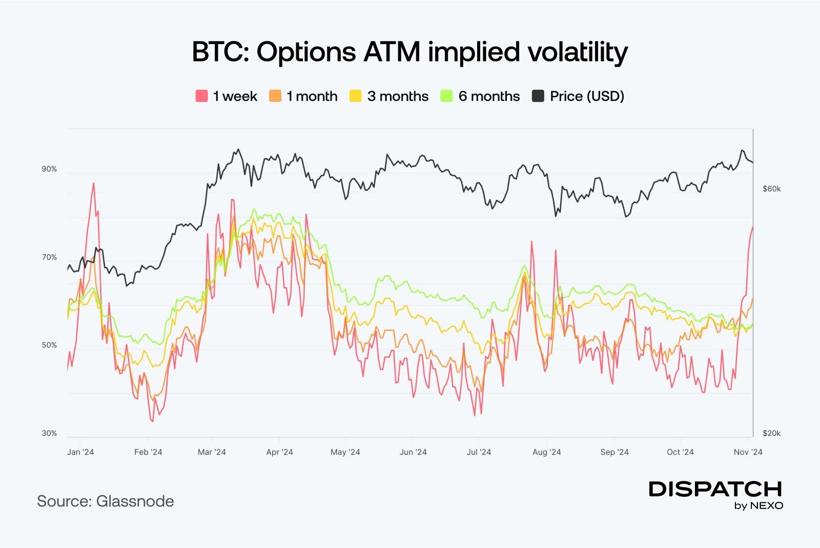 W miarę zbliżania się wyborów w USA, Bitcoin doświadcza wzrostu zmienności , który stawia traderów w stan najwyższej gotowości. 30-dniowy wskaźnik zmienności dla Bitcoina osiągnął najwyższy poziom od sierpnia, a doniesienia medialne sugerują potencjalne wahania cen o około 8% w obu kierunkach po głosowaniu – znacznie więcej niż typowe wahania o 2%. Ta niepewność jest spotęgowana przez zmieniającą się dynamikę polityczną, w szczególności dotyczącą byłego prezydenta Donalda Trumpa, którego szanse rynkowe na prognozy spadły w obliczu zacieśniających się wyników wyścigu z wiceprezydent Kamalą Harris. Traderzy przygotowują się na gwałtowne wahania, ponieważ czynniki zewnętrzne wpływają na akcję cenową Bitcoina i szerszy rynek kryptowalut.