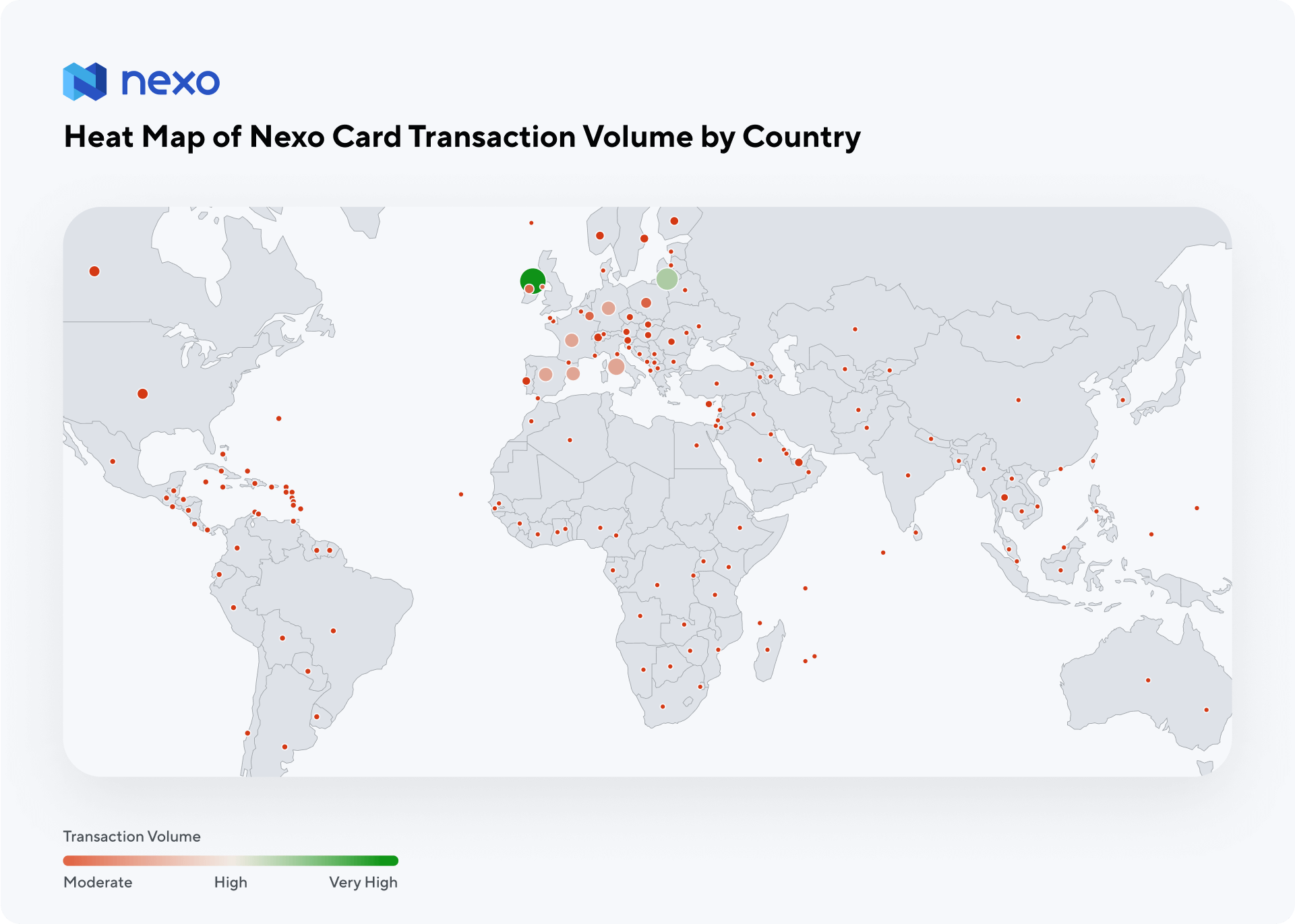 Patrząc na czołowe europejskie kraje handlowe pod względem liczby transakcji, jasne jest, że karta Nexo jest szeroko stosowana na całym kontynencie.