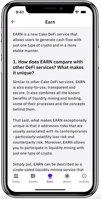 EARN to nowa usługa Cake DeFi, która pozwala użytkownikom generować przepływy pieniężne za pomocą tylko jednego rodzaju krypto i w bardziej stabilny sposób.