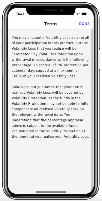- Nagrody będą wypłacane co 24 godziny, pomniejszone o opłaty Cake DeFi, z których stały procent zostanie przekazany do puli ochrony przed zmiennością. Nagrody te będą w tym samym typie kryptowaluty, którą przydziela użytkownik i będą dostępne w Twoim „SALDA”.