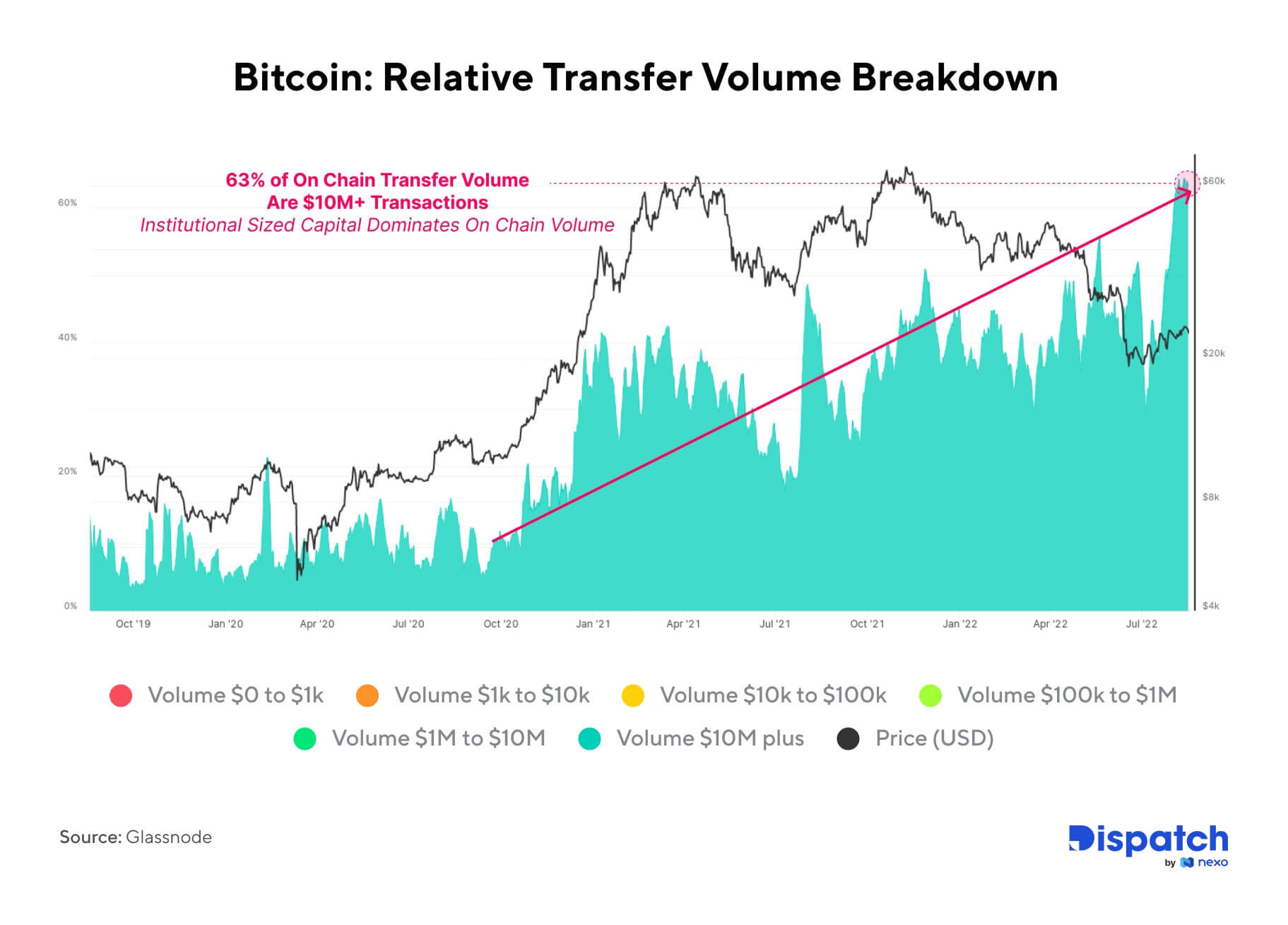 Transakcje o wartości ponad 10 mln USD stanowią większość transferów BTC
