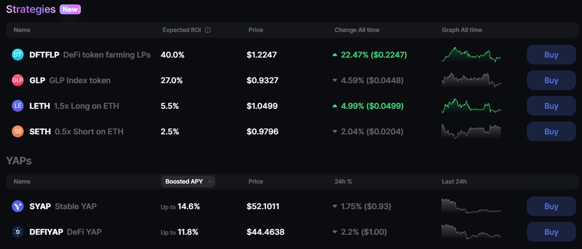 Przede wszystkim należy zauważyć, że nie ustalają ani nie określają zysków wyświetlanych na platformie. Zasadniczo platforma agreguje różne protokoły DeFi dostępne na rynku i odzwierciedla te same zyski wyświetlane w odpowiednich źródłach (pomniejszone o ich prowizję).