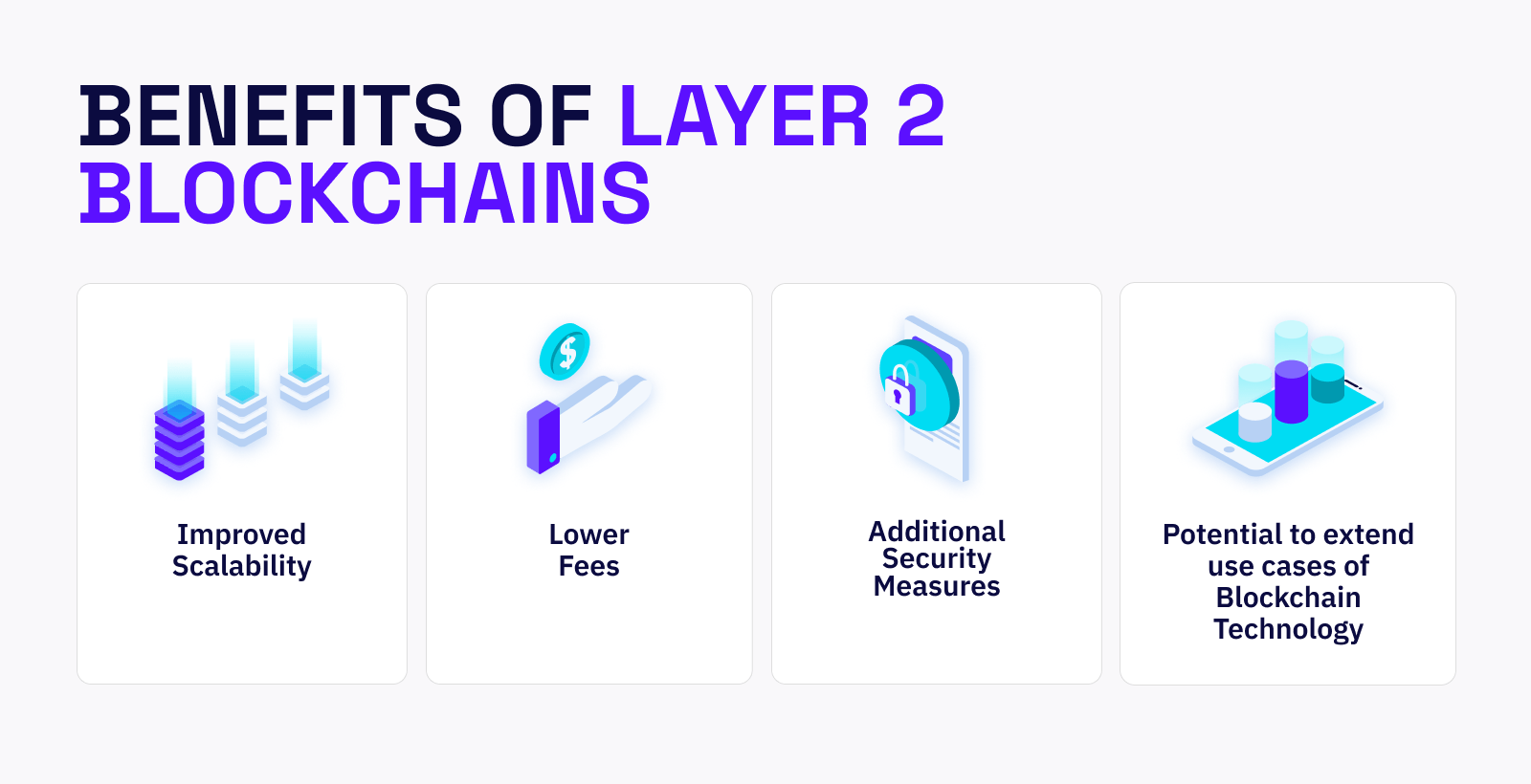 Jedną z głównych zalet łańcuchów bloków warstwy 2 jest ulepszona skalowalność. Im więcej osób korzysta z łańcucha bloków, tym bardziej staje się on przeciążony, co prowadzi do wolniejszych prędkości transakcji i wyższych opłat. Może to stanowić główną przeszkodę w adopcji, ponieważ ogranicza typy aplikacji i przypadków użycia, które można zbudować na blockchainie.