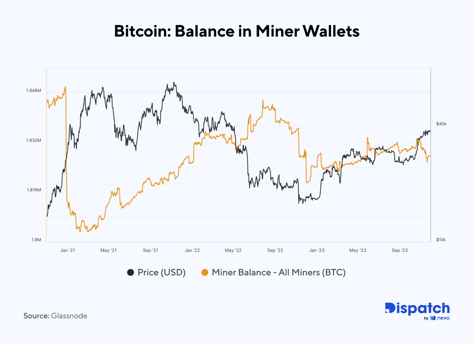 Czy w świetle Wielkiej Pomysłu z tamtego tygodnia zastanawiałeś się kiedyś, ile tak naprawdę mają górnicy Bitcoina? Wyjaśniamy wszystkie niewiadome – poniższy wykres przedstawia ilość Bitcoinów przechowywanych w portfelach górników w ciągu ostatnich trzech lat przy obecnej liczbie… bęben, proszę – 1,82 miliona monet o wartości nieco ponad 67 miliardów dolarów. 👀